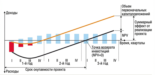 Чистая текущая стоимость NPV проекта (эффект проекта – первоначальные капиталовложения)